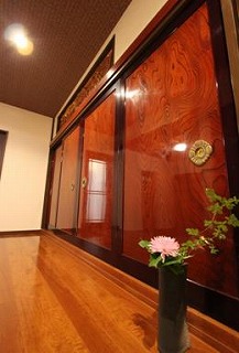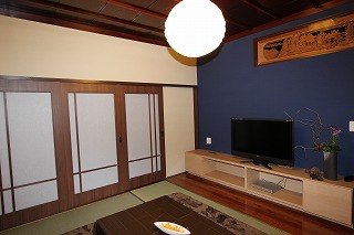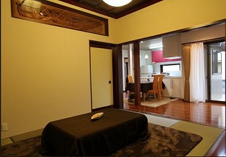 リフォーム後![]() 家の中心のリビングには明るい光が差し込みます壁には能登産珪藻土を使用。湿度の調整もでき、保温性もよいので省エネにつながります。 ![]() 建具を閉めれば独立したリビング空間となります。 |