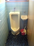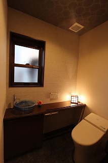 リフォーム後![]() 落ち着いたトイレ空間。無垢カウンターとガラス手洗いボウルを使用しています。 ![]() 空間のポイントとして黒竹をあしらいました。 |