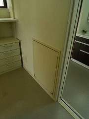リフォーム後![]() 充実度を高くしました。 ![]() 折りたたみ式アイロン台を設置し、使うときだけ、壁から起こして、使わないときは、壁の厚みの中に、納まるように設計しました。 |