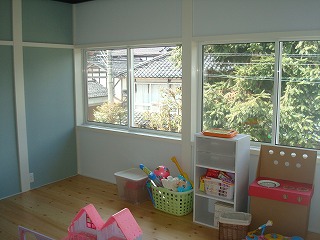 - 母屋2階の使われていなかった部屋を子供部屋としました。お客様と一緒にお部屋の塗装をした想い出リフォーム。