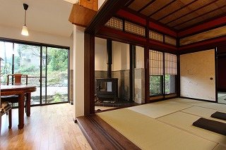 リフォーム後![]() 吹き抜けにしたことで1階からのあたたまった空気が上へ抜けるようにしました。 ![]() 空間のポイントにもなる薪ストーブ。 ![]() 薪ストーブの周りには石を施工し、蓄熱効果があり、薪ストーブを消した後も暖かく過ごす事ができます。 |