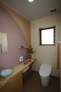 - トイレがこの家で一番お気に入りの場所になりました!天然の木目の優しさと、ぬくもりある優しいデザインが気にいっています。寝室からも近いので、夜も安心ししていけるようになり、夫婦や家族みんな喜んでいます。