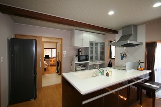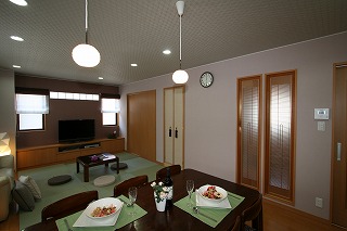 - お家の中で一番明るい和室を、LDKとし、お孫さん達が遊びに来た時には、みんなでお食事が楽しめ、ひとつの空間で遊べるような広々空間をご提案しました。ぐるっと廻れる間取りで生活動線を考えました。