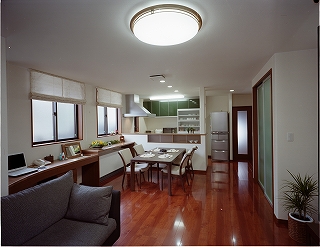 リフォーム後![]() 左からパソコンコーナー、ドレッサー、蓄熱暖房機スペース。 ![]() 必要な場所に必要なものが置けるよう造作の家具で対応。 ![]() 間仕切りを取った事で明るく、広々としたLDKになりました。キッチンからリビングが見渡せるようになりました。 ![]() キッチンは手元が見えないように。壁のニッチに扉をつけてお醤油や箸も入ります。 |