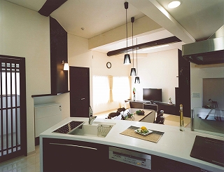 - キッチンを対面式にしたことで、料理の最中もご家族とのコミュニケーションが図れ、奥様も寂しくありません。