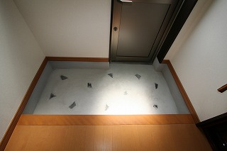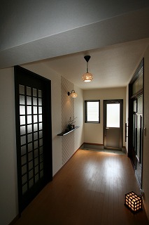リフォーム後![]() 玄関ホール、奥は勝手口となっています。 ![]() 勝手口の土間には珠洲焼を埋め込みました。 |