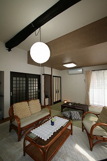 リフォーム後![]() 南側にリビングを設け、風が家中を抜けるようにしました。 ![]() リビング仏間 ![]() リビング仏間に変形床を設けました。 |