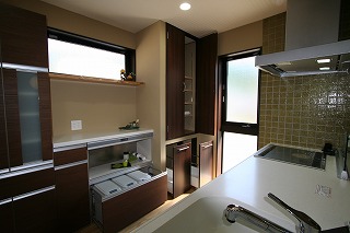 - 2.5坪の家事室をキッチン横に設けました。