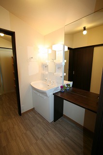 リフォーム後![]() 洗面室と脱衣室をわけたので、ゆったりした空間で身支度ができます。 |