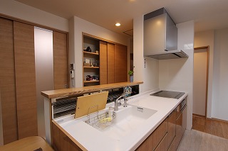 対面キッチンとなり、孫の様子がいつもうかがえて安心です。来客の際もすぐに空間を仕切る事ができるのでストレスを感じることなく暮らすことができます。