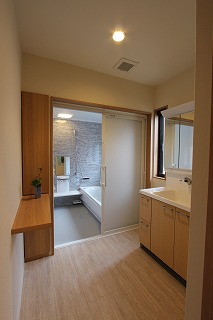 - 浴室はユニットバスとしました。またDKに廊下の一部を取り込み、LDKから洗面脱衣室、浴室へ直接行けるようになりヒートショックの心配も解消されました。