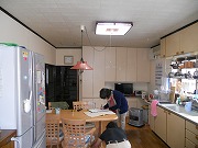 リフォーム後![]() 「ごろん」と寛げる畳コーナーを設けたリビング。トップライトを新設し、とても明るくなりました。腰壁は香杉の羽目板貼りとし、温かみのある空間に仕上がりました。 ![]() 畳コーナーの天井には竹を使用しました。 |