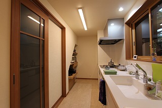 リフォーム後![]() スッキリとしたキッチン。 ![]() キッチンは中庭に面しているので、キッチンからも中庭の緑が楽しめます。 ![]() ![]() 階段下のスペースを利用して、家電収納棚を設けました。 |