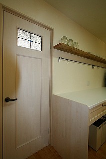 リフォーム後![]() 白色を基調とした中に、ブルーのタイルがアクセントとなり、おしゃれな雰囲気に...。 ![]() キッチン~洗面脱衣室の建具にもシンプルなステンドグラスを取り入れました。 |