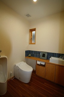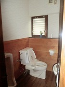リフォーム後![]() ゆったりしたトイレ空間を確保しました。オーソドックスなトイレ空間を一部タイル貼りでワンポイントを。 |