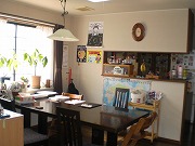 リフォーム後![]() 構造上抜けない柱を活かして設けたデザイン格子は視線をさりげなく遮るだけでなく、ダイニングテーブルの脚も兼ねる工夫でスッキリしました。 |