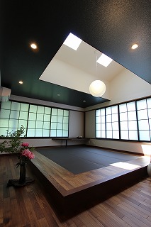 - 1階とはテイストを変え、シックな和モダンの「瞑想空間」をテーマとし、空間を構成しました。