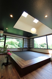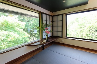 リフォーム後![]() 座った際に緑が美しく見渡せるよう一段小上がりとし、床の高さを調整しました。 ![]() 障子をしめると輪モダンな空間に。夜は「月見」を見立てた照明で幻想的な雰囲気をつくります。 ![]() 耐力壁を残しつつ、ふんだんに緑が楽しめる設計に...。 |