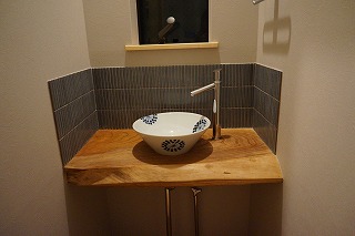 リフォーム後![]() ![]() 手洗いボウルとモザイクタイルがポイントです。 |