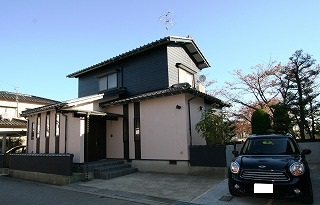 リフォーム後![]() 1階はほんのり桜色にして周辺環境と調和。 |