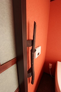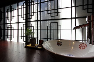 リフォーム後![]() リフォーム前は廊下だった場所にトイレを設けました。既存の障子戸の位置はそのままにし、手洗いカウンターの下からも明かりが入り、足元を明るくしています。 ![]() お気に入りの障子戸や建具、欄間がトイレ空間を素敵に演出しています。 ![]() 九谷焼の手洗いボウル ![]() 廊下にあった地袋天板はきれいに塗装して、手洗いカウンターとして活用。 ![]() 既存のケヤキ板を手洗いカウンター下の収納棚に...。 ![]() 欄間と引き戸はリメイクしてトイレに移設。 ![]() しつらえを合わせて、手摺には流木を使用しました。流木は乾燥させた上で塗装を施し、台座を取り付けました。 |