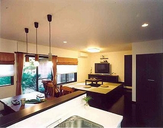- キッチンは奥様の念願だった対面式にしてダイニングに設置しました。