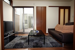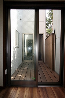 - 今までデッドスペースになっていた中庭部分が、ダイニングにもリビングにも、風や光を通しながら、家族のコミュニケーションがとれるようになりました。