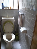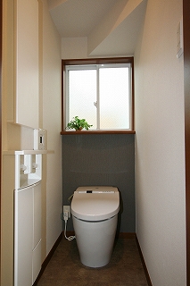 リフォーム後![]() トイレ。一面だけポイントクロス貼りに。 |