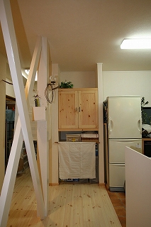 リフォーム後![]() キッチンのカウンター壁にマガジンラックで収納充実♪ ![]() 収納扉もパイン材とし手作り感を。 |