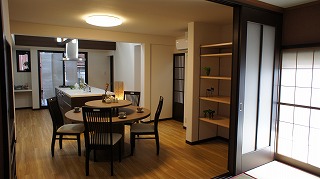 リフォーム後![]() ダイニングキッチンと隣接してるので、建具をあけると広々LDK空間になります。家族がそれぞれの時間を同じ空間にいながら、自由に過せることができます。 |