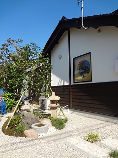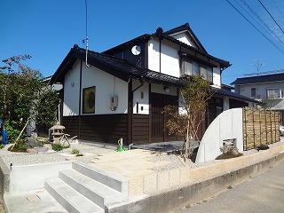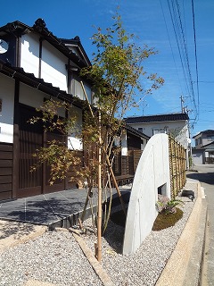 リフォーム後![]() 白い外壁に杉板の下見板張りがアクセントとなり、上品な佇まい...。 ![]() 玄関まわりにも工夫を...。 ![]() 瓦も埋め込み、外構デザインのポイントのひとつに...。 ![]() リフォーム前の庭に置いてあった手水鉢のような石も新しい庭で利用しました。 |