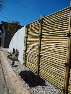 - 玄関前には御簾垣を設置しました。視線と冬場の雪の吹き込みを遮断することができます。機能性だけでなく、デザイン性にもこだわりました。