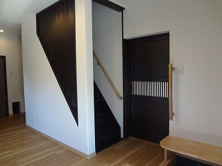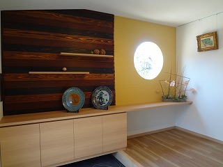 リフォーム後![]() 玄関を入ると輪島の漆職人さんが3色に塗り分けた壁が目を引きます。 |