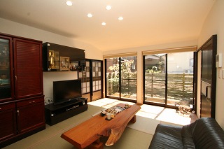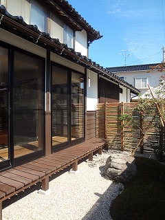 リフォーム後![]() リビングから庭へと通じる濡れ縁。腰をかけると自然の心地良さを感じることができます |