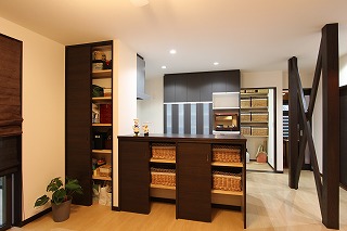 リフォーム後![]() キッチンカウンター部分にも収納を設けました。またキッチン奥にはパントリーも設け、キッチン用品、食材も一目でわかり、使い勝手も抜群です。 ![]() シックなカラーのキッチン。収納が充実しているので、いつでもスッキリと保てます。 |