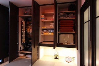 - リビング、キッチン、和室...それぞれに収納を設けました。それぞれの空間で物がすっきりと片付けることができます。