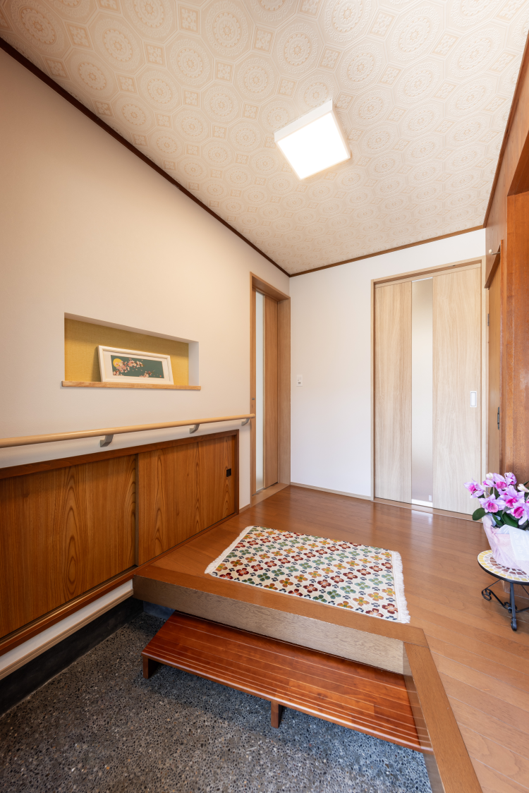 リフォーム後![]() 玄関の段差は手すりを付け安全に上がり降りできるようにしました ![]() ![]() ニッチのクロスで空間に一味加えました |