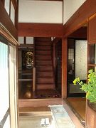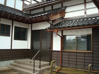リフォーム後![]() ご家族用の玄関。建物内の段差を解消する為に外部に階段と手摺りを設けました。 |