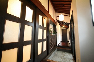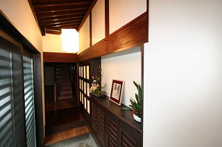 リフォーム後![]() 既存の天井などを活かし、新しい中にも懐かしさを感じることができます。 ![]() 玄関を入って正面にはオリジナル家具を...。玄関とリビングを間仕切っています。玄関側は下駄箱、リビング側は収納棚となっています。下駄箱の上は飾棚として季節の花々を飾れます。 |