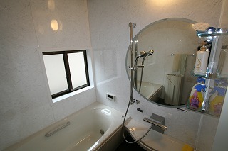 リフォーム後![]() お客様がSRで一目ぼれをしたまんまる鏡がポイントです。ユニットバスであたたかく、お手入れも楽になりました。 |