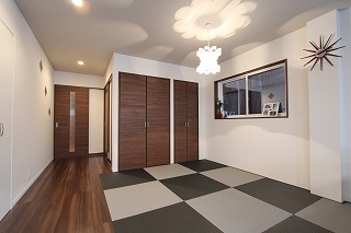 リフォーム後![]() 仏間を兼ねた畳スペースは市松敷きでシックにまとめました。 |