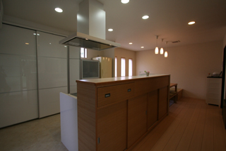 リフォーム後![]() 収納力のあるキッチン。 オーダー家具の対面カウンターは細かなものがスッキリ収納できるようになりました。 |
