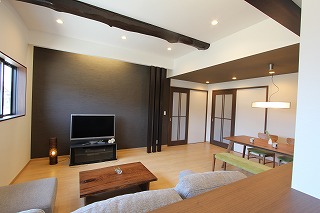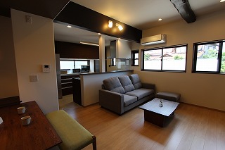 リフォーム後![]() 子世帯LDK。シックな和モダンテイストの落ち着く空間に仕上がりました。 ![]() 天井の高さがゆるやかにリビング、ダイニング空間を分けています。 ![]() テレビ台背面は能登産珪藻土塗りとしました。空間を引き締めるポイントとなっています。 ![]() 親世帯用のLDK。物置になっていたガレージを住空間にしました。動きやすいコンパクトな間取りとしました。 |