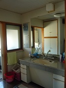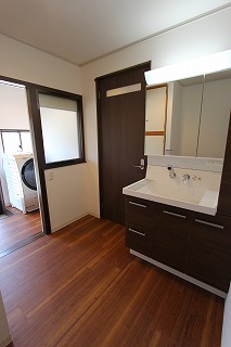 リフォーム後![]() 子世帯洗面室。脱衣室と洗面室を分けました。洗面室にはユーティリティも隣接しており、家事楽動線となっています。 ![]() 親世帯洗面脱衣室~浴室。 |