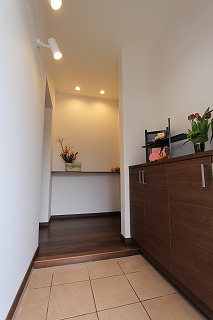 リフォーム後![]() ご家族の靴がスッキリと片付きます。コートハンガーも設けました。直接キッチンへの出入りが可能なので、お買い物帰りなどはとても便利です。 |