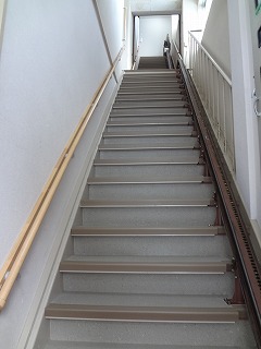 リフォーム後![]() 架け替えることのできない階段は、踏み面を溶接にて延長し、新たに手摺りを設け、上り下りの安全を確保しました。 |