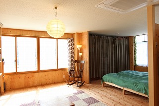 リフォーム後![]() 2階のベッドスペース。仕切り壁で空間をゾーンわけしてあり、ホテル感覚を楽しんでいただけます。 |