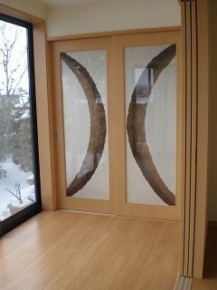 リフォーム後![]() 縁側奥がウッドデッキとなっています。 ![]() オリジナル和紙を挟み込んだ建具。大胆な柄がパッと目をひく空間のアクセントとなっています。 |