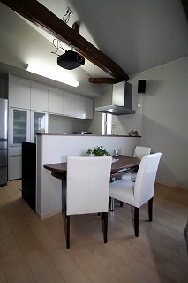 リフォーム後![]() 2Fダイニングキッチンは白とこげ茶の配色がモダンな印象 |