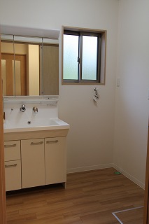 リフォーム後![]() 収納力のある洗面化粧台で小物もスッキリと片付けることができます。 |